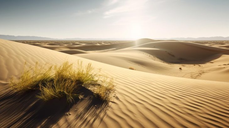 Рассвет в пустыне окрашивает песок в цвета, которых нет в палитре цивилизации.
