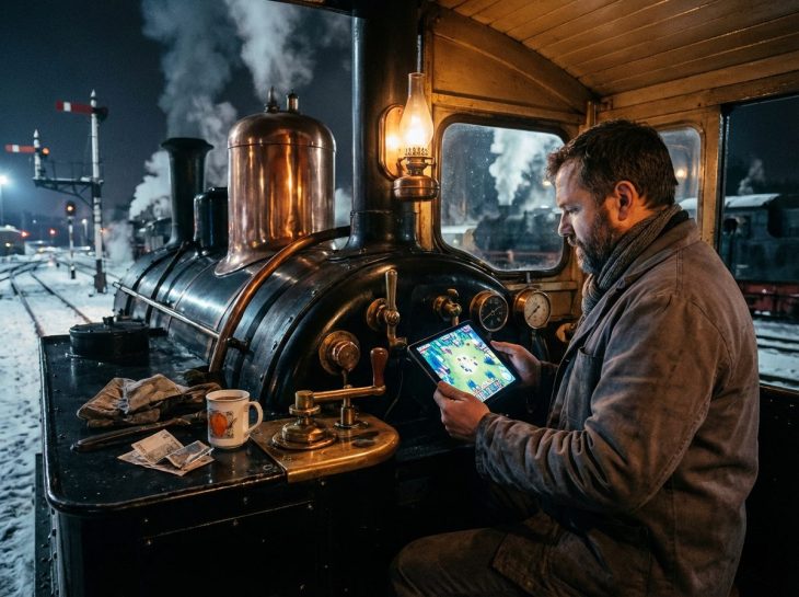 В другой раз всё шло наперекосяк: состав не сцеплялся, игра не шла. Выключил планшет, вышел покурить. Смотрю — соседний паровоз пыхтит одиноко. Помог ему сцепиться, и мой состав тоже встал как надо. Понял: иногда нужно помочь чужому двигаться, чтобы свой пошёл.